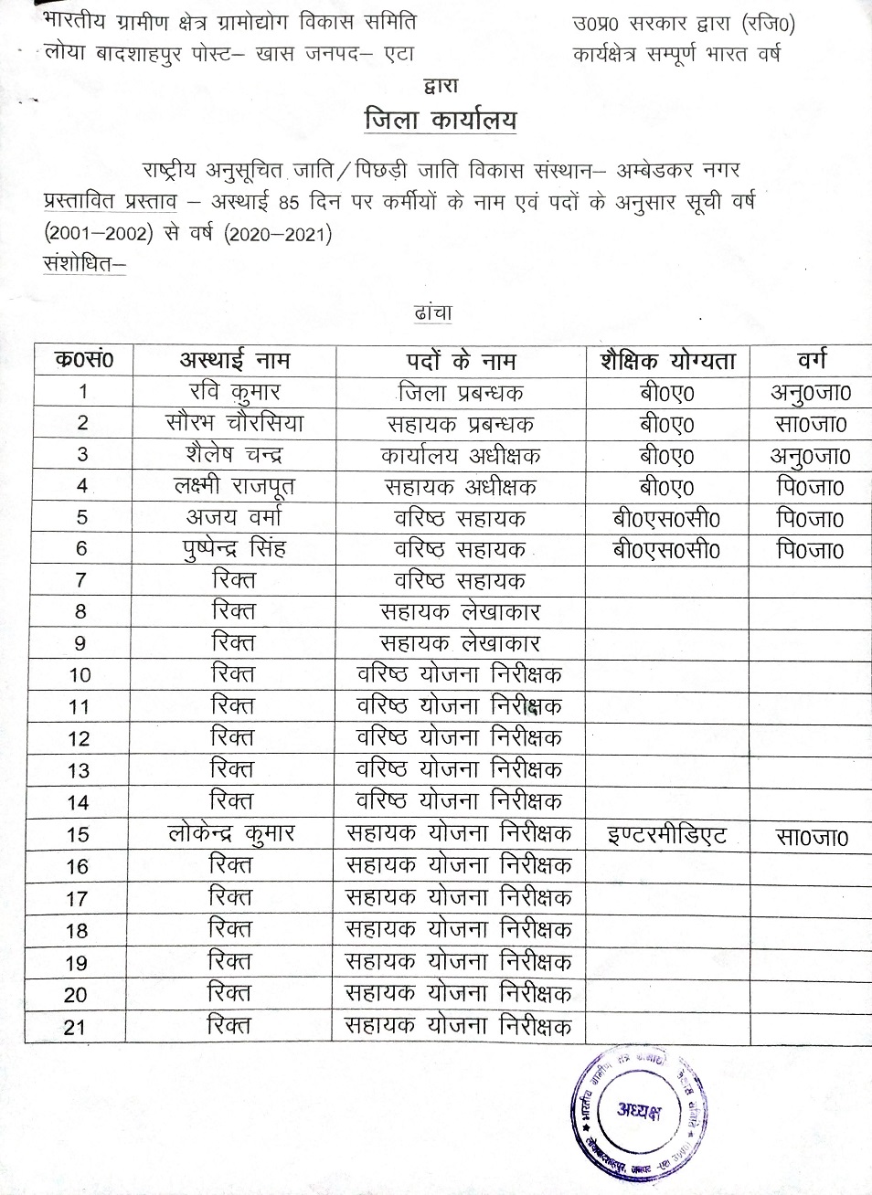 Ambedkar Nagar District Staff List