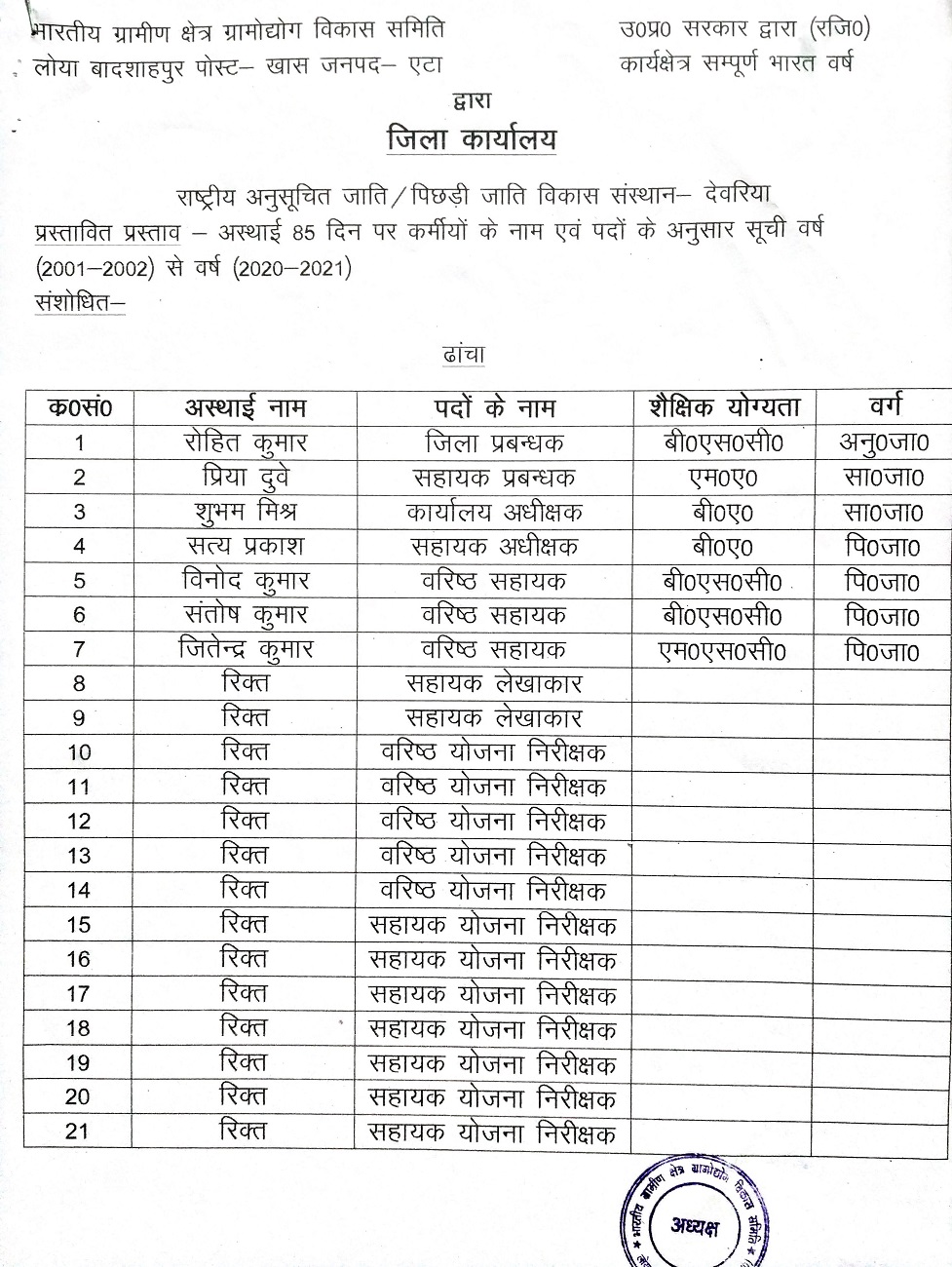 Devariya District Staff List